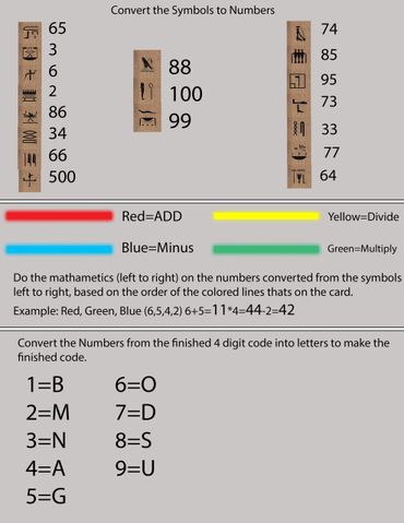 The runner has a card that has 4-5 symbols and colored lines. He/She will need to describe these symbols/colors to you along with the order of them and then proceed to use the converter page to figure out the secret 4 lettered word. Once you find the word, pause the game and check with a referee.